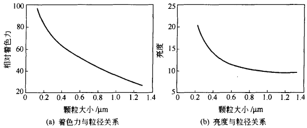 1、顏料粒徑與各項性能的關系